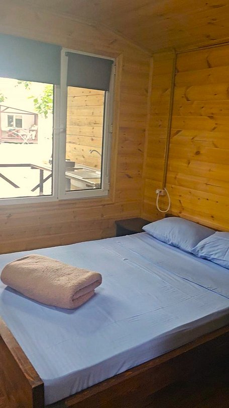 - постельное бельё (2-х местный номер/домик – 1 к-т, 4-х местный домик – 2 к-та);