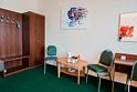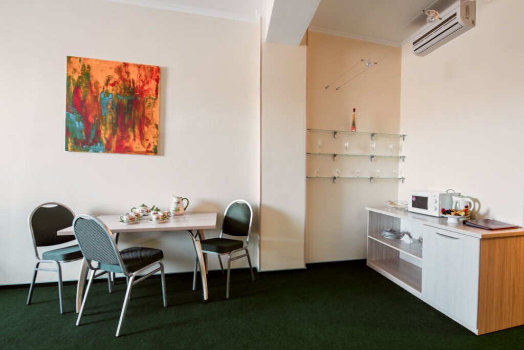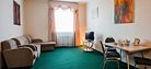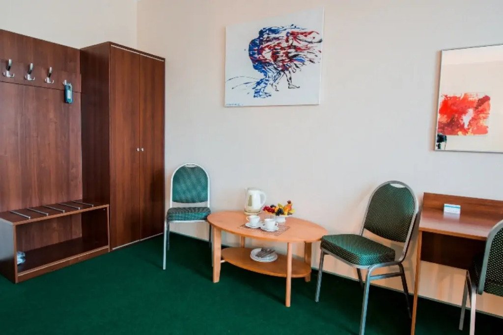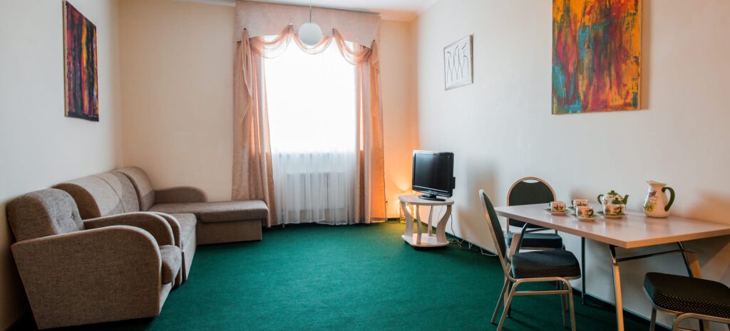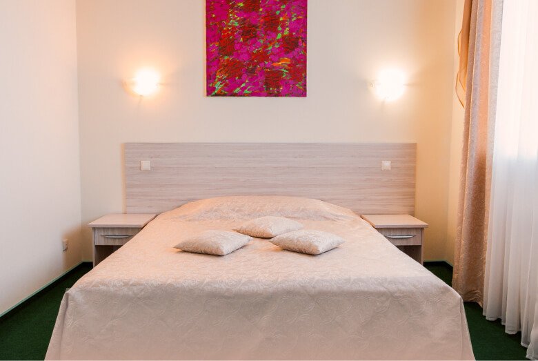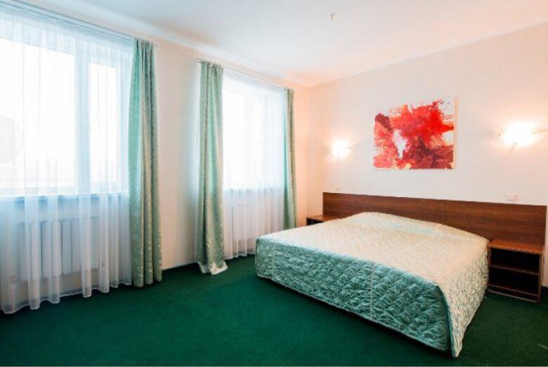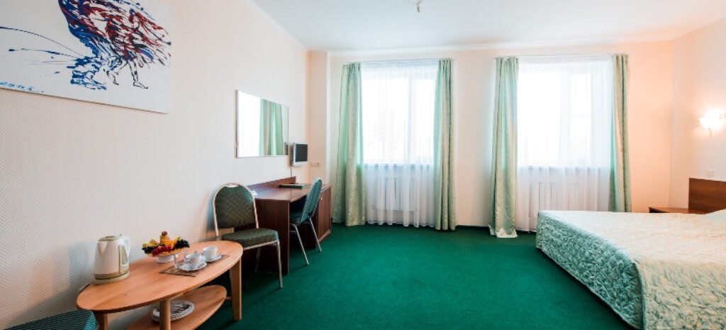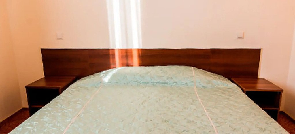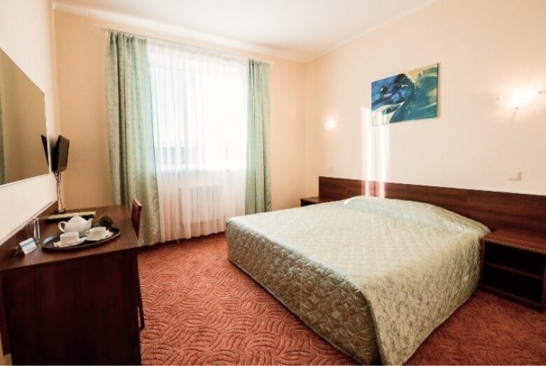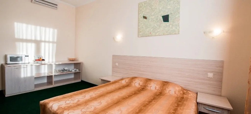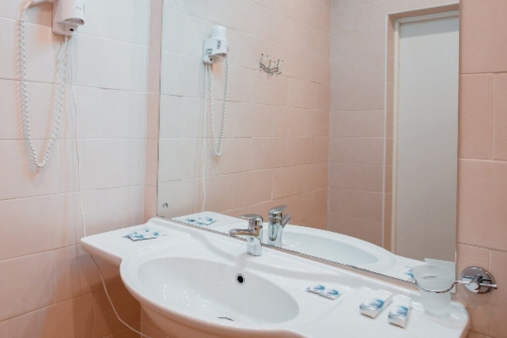 В номере вы найдёте душ, телевизор и тапочки. Оснащение зависит от выбранной категории номера.