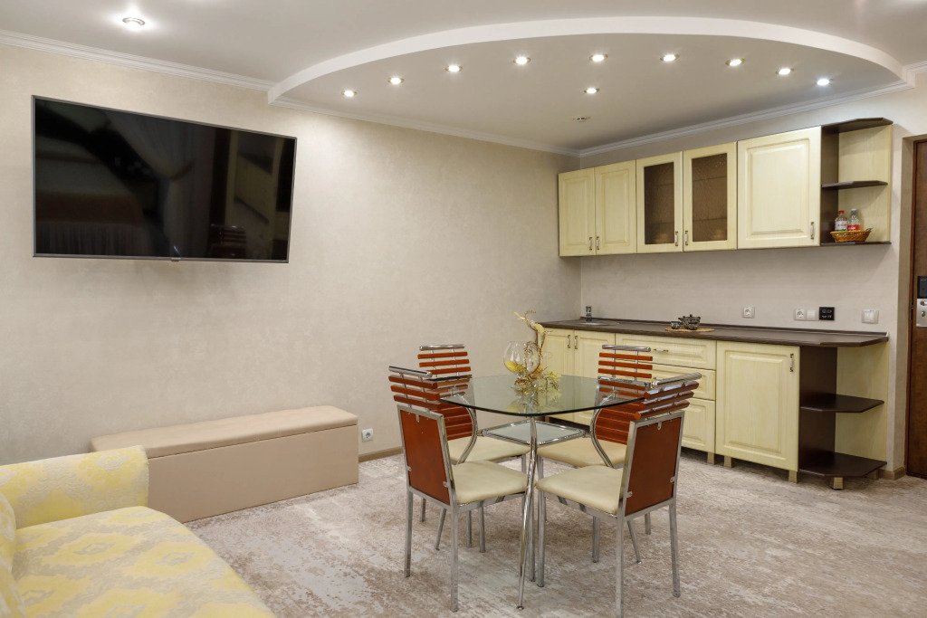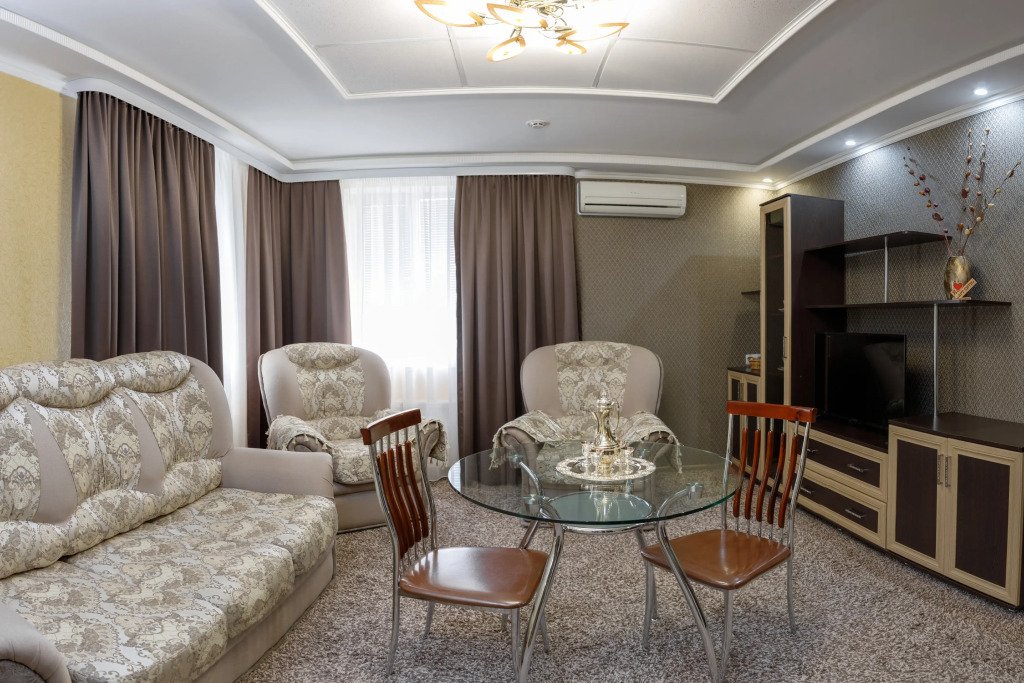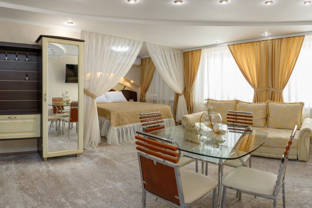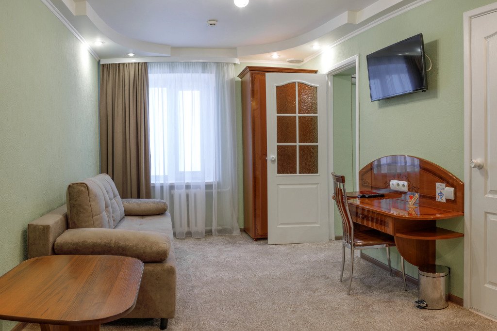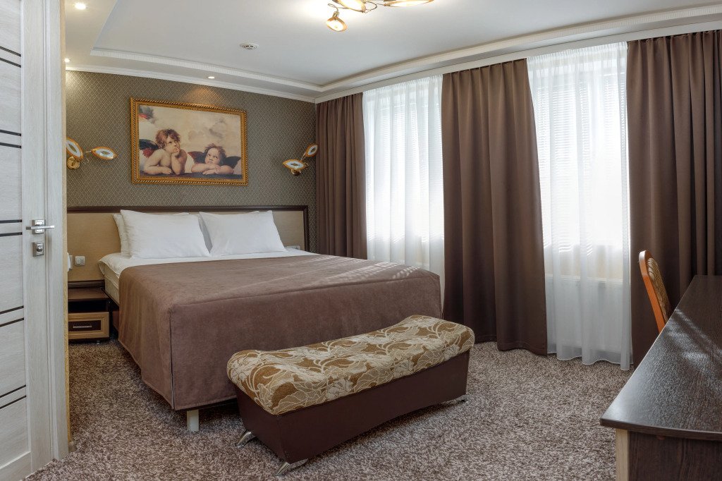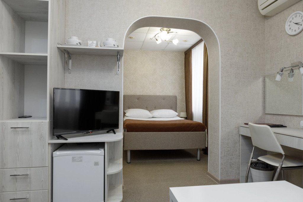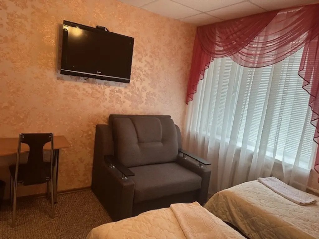 Номер уютно обставлен и оснащён необходимым, чтобы отдохнуть после долгого и насыщенного дня. Имеются телевизор. Оснащение зависит от выбранной категории номера.