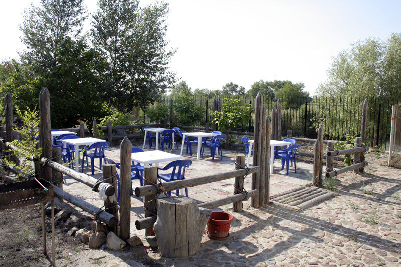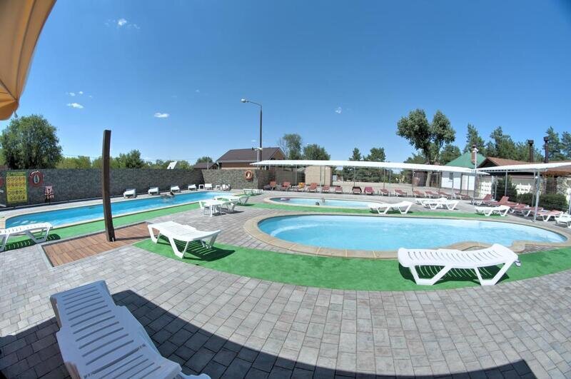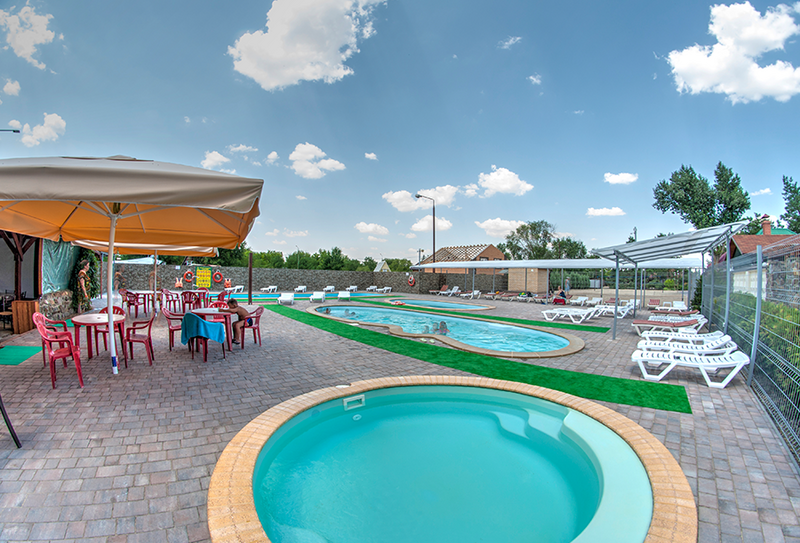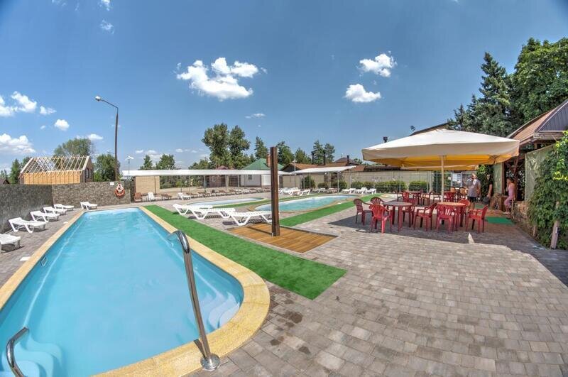 К услугам гостей базы отдыха — просторный плавательный бассейн в обустроенной аквазоне. Рядом есть столики под большими зонтами для расслабленного отдыха..