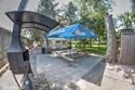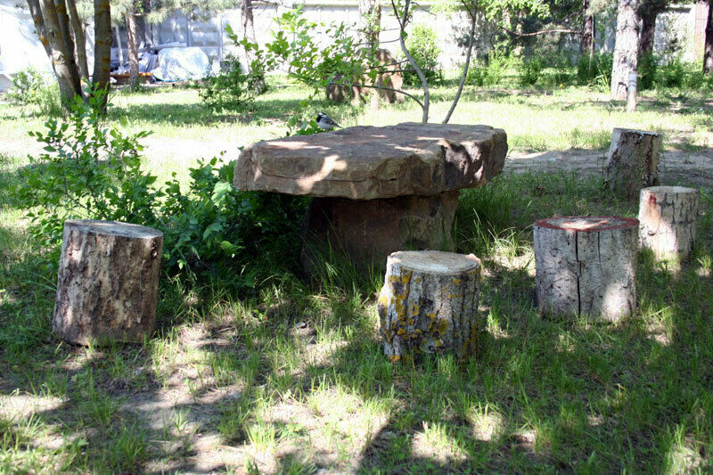 Беседка с собственной мангальной зоной, мойкой и столом, находится в соснах.