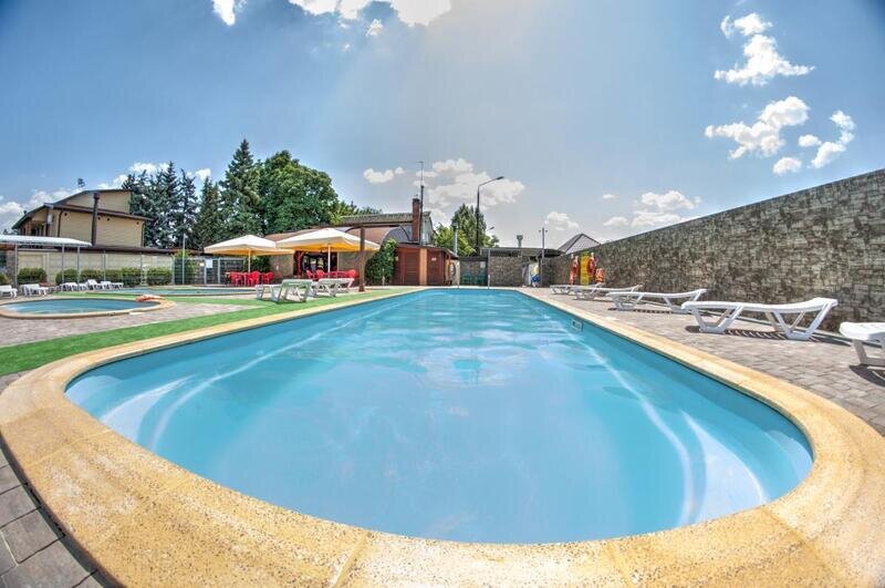 Для любителей активного отдыха на свежем воздухе на территории есть открытый бассейн с оборудованной лежаками и столиками зоной отдыха.