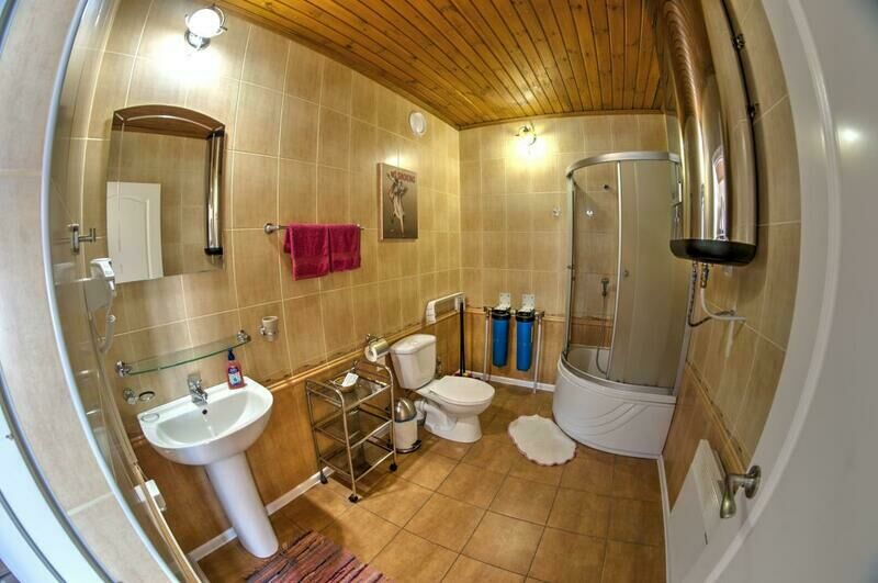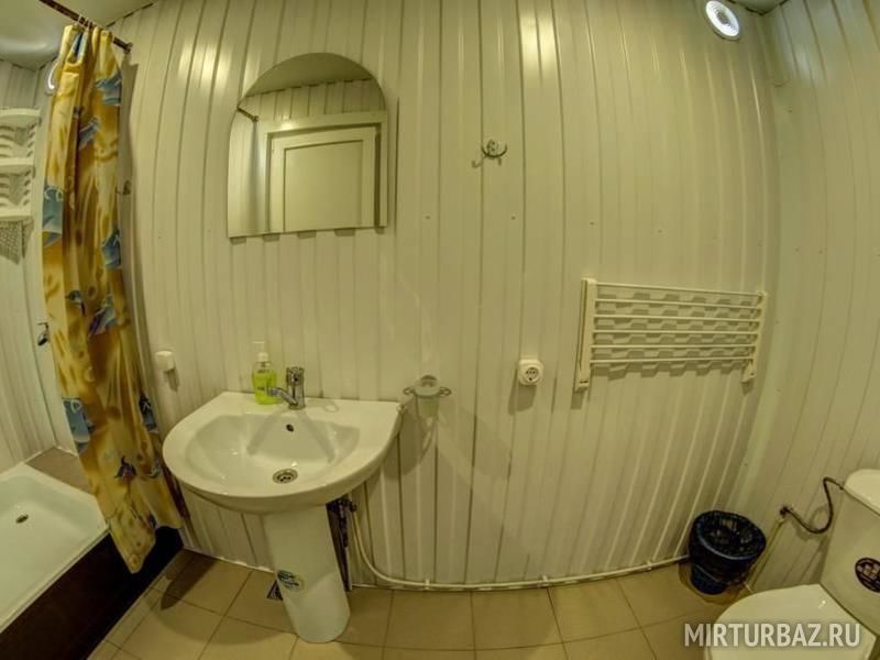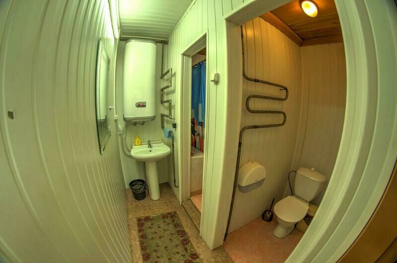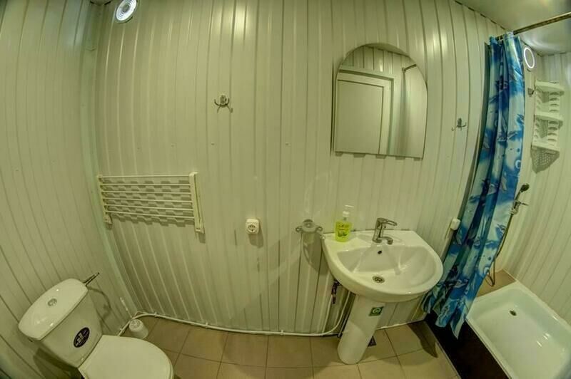 Санузел и душ находятся отдельно, рядом с помещением для проживания. В номере ТВ, мини-холодильник