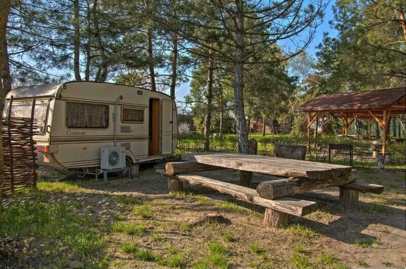 Четырех местный трейлер со сплит системой, холодильником, беседкой, вода, сан.узел, душ . Рядом оборудована удобная и многофункциональная зелёная зона отдыха.