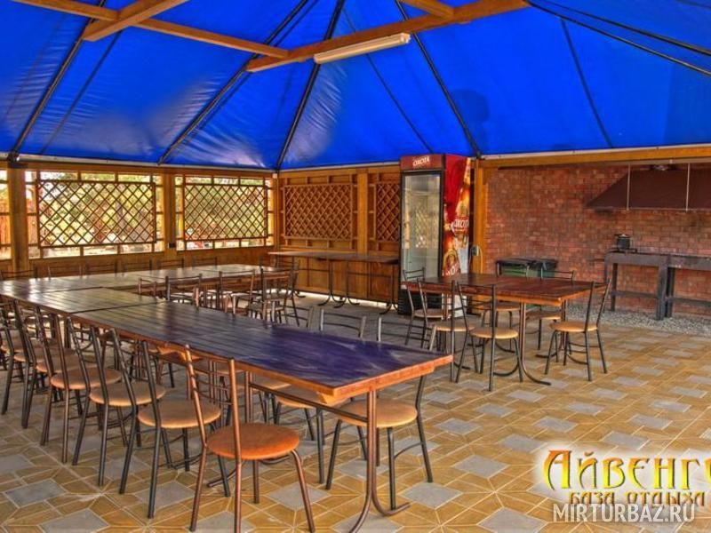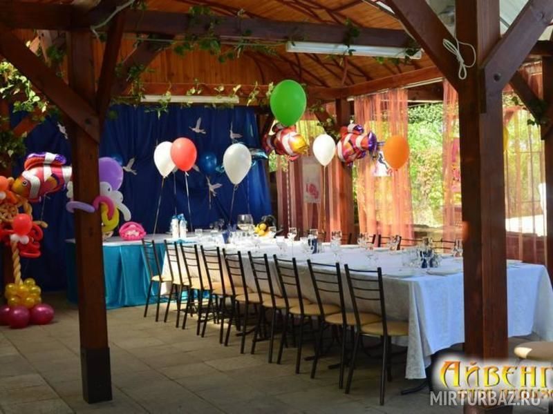 Банкетный зал вмещает до 120 гостей, Фирменная кухня, не оставит равнодушным самого требовательного гурмана. Это делает ресторан базы отдыха "Айвенго" прекрасным местом для проведения крупного торжества.