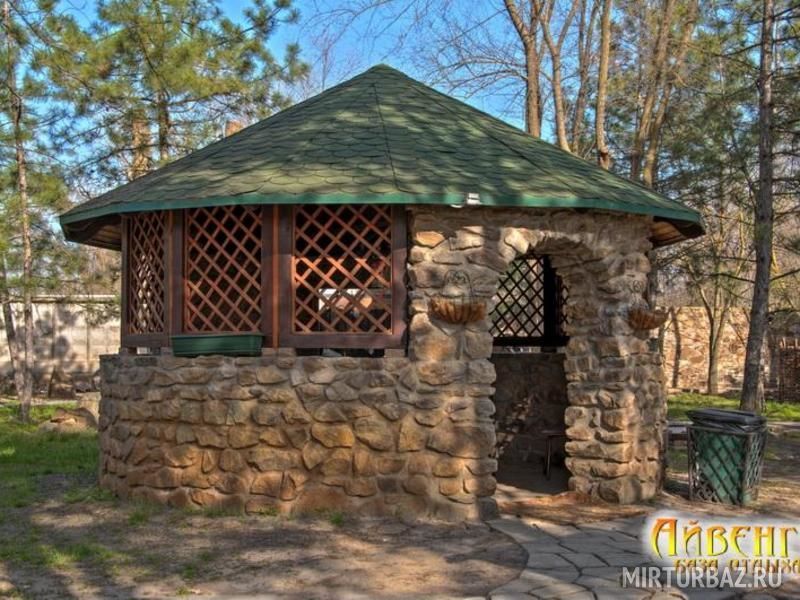 Все беседки имеют освещение и электрические розетки. Рядом с беседками размещены мангалы. Большая беседка до 100 человек, подходит для проведения любого мероприятия. В беседке два холодильника.