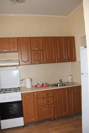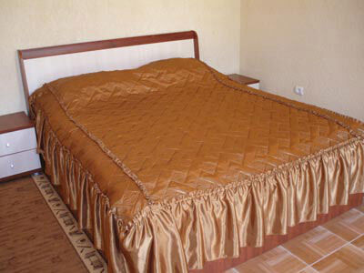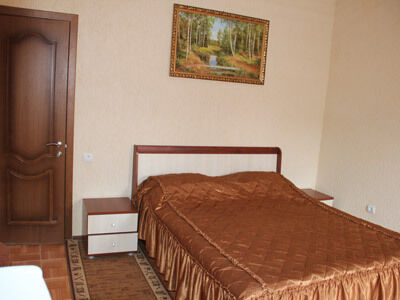 В домике есть уютная кухня, оборудованная всем необходимым, душевые кабинки, горячая и холодная вода, спальные гарнитуры (в двухместных коттеджах - двуспальные кровати, в трехместном - односпальные), шкаф, тумбочки, телевизор и холодильник.