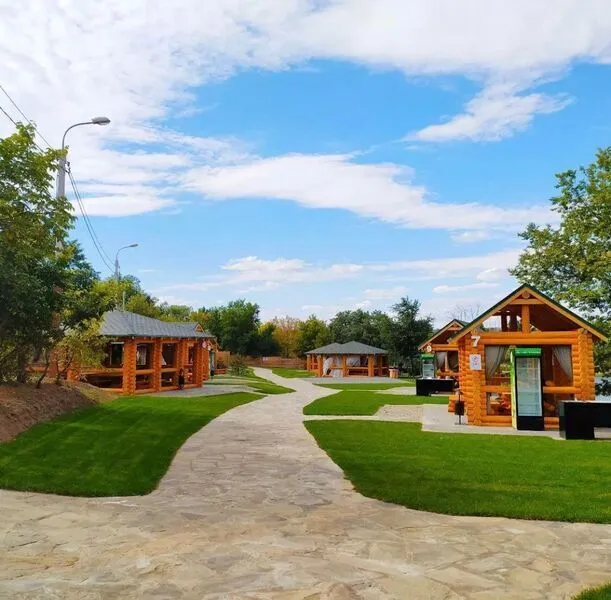 На территории парка расположены 14 беседок: 6 беседок на 15 мест, 6 на 30 мест, 2 на 50 мест. Детская площадка, санузлы, комната матери и ребенка. У каждой беседки своя мангальная зона, холодильник, разделочный стол с раковиной и краном, шампура. В продаже вода, соки, мороженое, кофе, снэки. Банкет «под ключ», сервировка, официант, аниматоры, ведущие — бронь осуществляется заранее, не менее, чем за 5 дней! Подходит для свадеб, корпоративов, конференций, фестивалей, шоу, дней рождений.