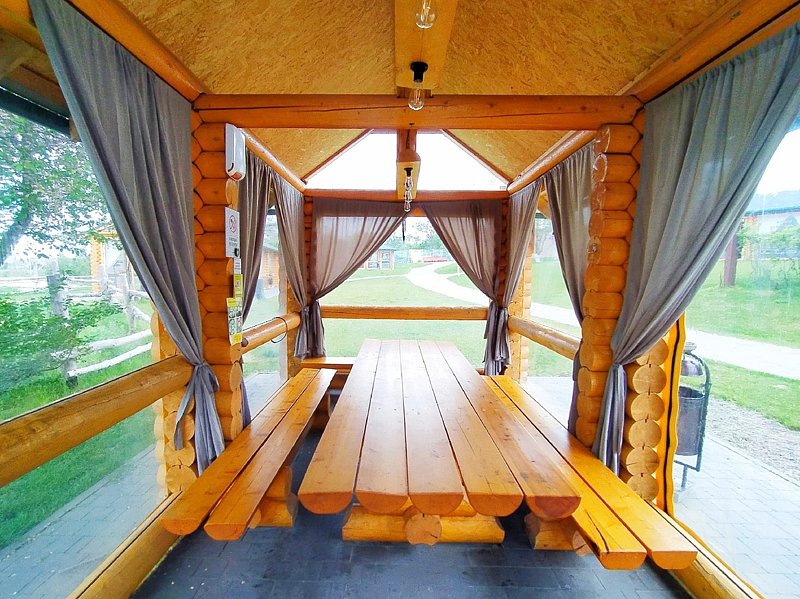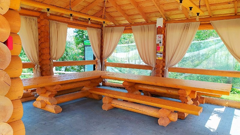 Отапливаемая зимой и охлаждаемая летом закрытая беседка, расположена на территории акватермального комплекса экопарка Ангарский.