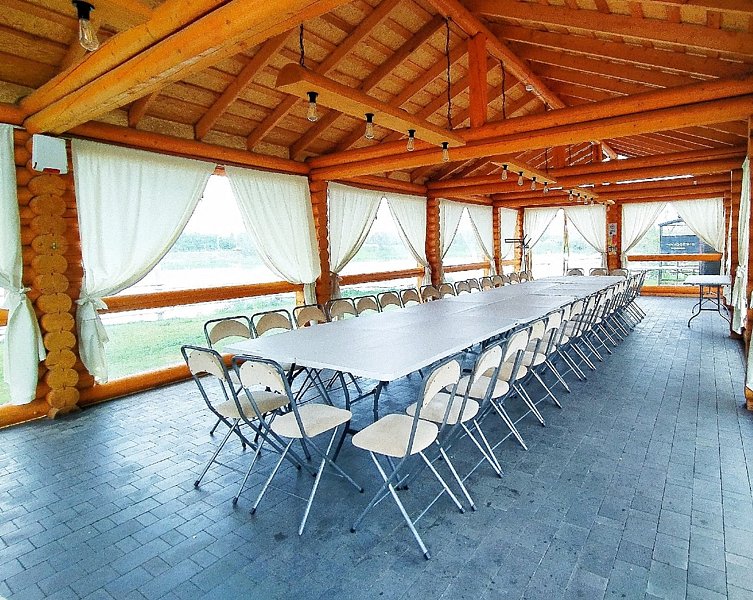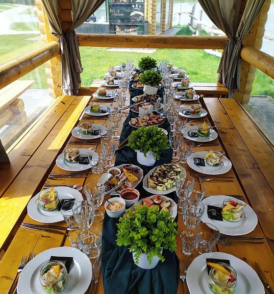 Для более торжественных событий на территории парка есть несколько вариантов больших белоснежных шатров на 30-200 гостей. Любители банных процедур могут посетить акватермальный комплекс премиум-класса.