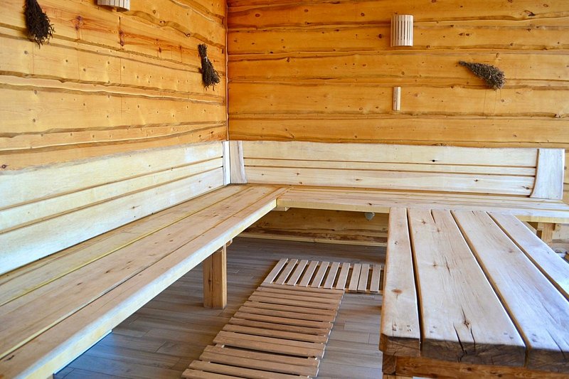 банный комплекс рассчитан на 10-12 человек. В стоимость включены пользование баней, душем, чайной-гостинной и верандой.