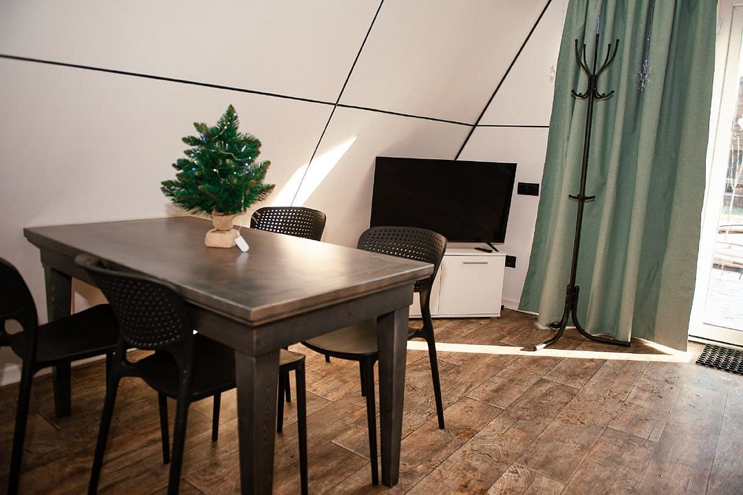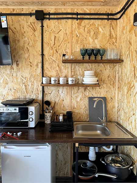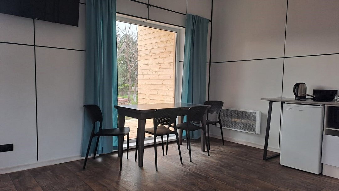 Модульный дом с уютной террасой, панорамными окнами. Каждый номер оснащен всем необходимым для комфортного проживания.