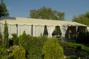 На территории базы отдыха «Барвиха» находится шатер, вмещающий до ста человек, что делает его отличным местом для организации мероприятий на свежем воздухе. Пространство идеально подходит для праздников и встреч, позволяя насладиться природой в комфортных условиях.