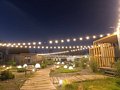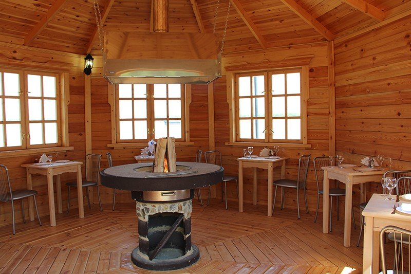 Беседка «Сказка» с панорамными окнами, которая вмещает до тридцати человек — идеальное пространство для организации мероприятий с живописным видом на окружающую природу.