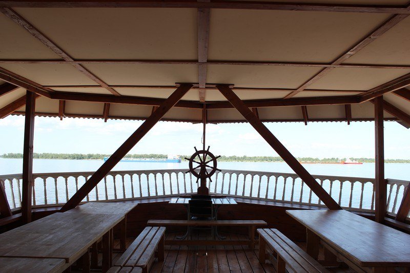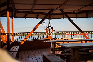На базе отдыха «Барвиха» гостей встречает уникальная беседка, стилизованная под корабль со штурвалом. Это пространство, способное вмещать до сорока человек, словно отправляет своих посетителей в плавание к величественной Волге.