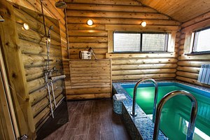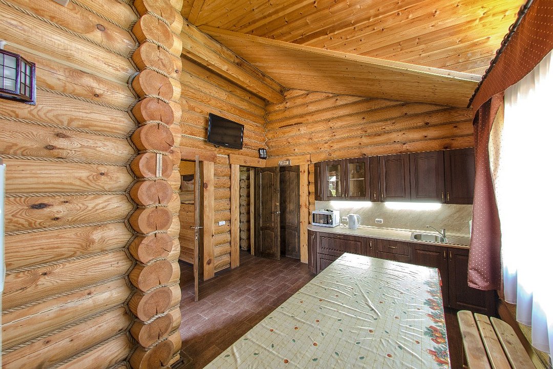Баня на дровах — это место, где можно насладиться теплом и запахом дерева. Здесь есть бассейн, где можно освежиться после парной. Для комфортного отдыха предусмотрены гостиная с кухней, комната для отдыха с телевизором и все необходимые удобства, включая душ, санузел и современную бытовую технику.