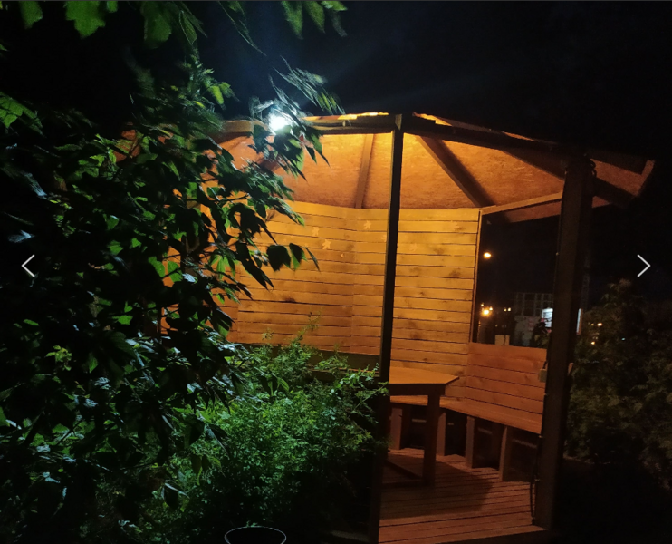 - Беседки. Рассчитаны на компанию до 6 человек. Рядом мангал, есть освещение.