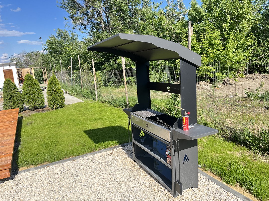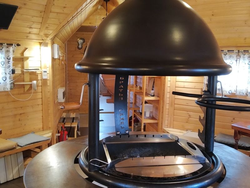 - Гриль–домики. Зал домика рассчитан на компанию до 12 человек. Внутри помещения установлен гриль. Шампуры и решетку вам предоставят на месте. В домике — кухонные мелочи, электрический чайник, телевизор. Есть санузел, отопление, сплит–система. Рядом с каждым домиком расположена летняя территория, на которой стоят садовая мебель, большой зонт, уличный мангал. Один мешок угля входит в стоимость услуги. Можно также воспользоваться печью для приготовления блюд в казане. Стоимость: понедельник–четверг — 4200 ₽ / 3 часа, пятница, суббота, воскресенье и праздничные дни — 4700 ₽ / 3 часа, продление аренды, начиная с четвертого часа — 1300 ₽.