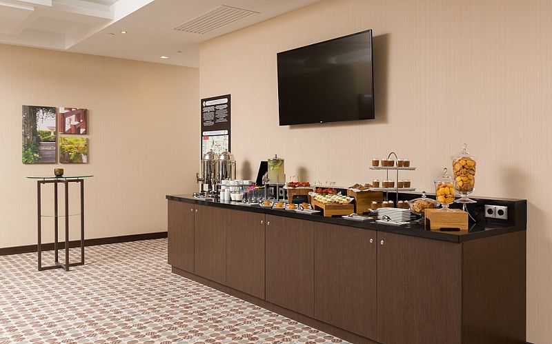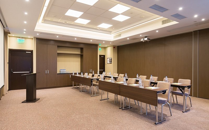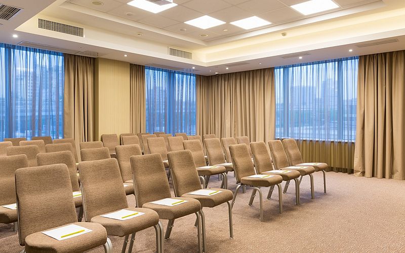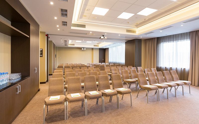 Отель предлагает все возможности для организации деловых переговоров и конференций. Для этого в составе комплекса предусмотрены три конференц-зала, общая площадь которых составляет более 200 квадратных метров. Каждый зал оборудован современным аудио- и видеооборудованием.