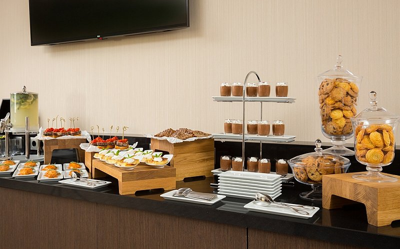 Каждое утро гости отеля «Хилтон Гарден Инн Волгоград» приглашаются на завтрак, также можно заказать понравившееся блюдо прямо в номер. Услуга рум-сервис (доставка в номер) доступна в вечернее время. Бар, расположенный на первом этаже, открыт для посетителей 24 часа в сутки.