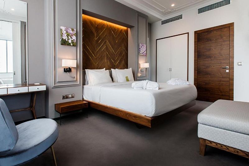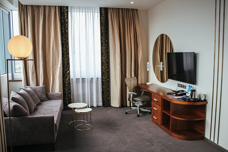 Wi-Fi, телефон, система климат-контроля, настольные лампы, фен, будильник, электронные замки, утюг, ванна, двуспальная кровать, диван, вешалки, письменный стол, зеркало, вид на город, стул, телевизор с плоским экраном, шкаф-купе, пуфик, можно с питомцамиВ гостиничном номере