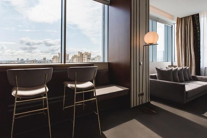 Wi-Fi, телефон, холодильник, система климат-контроля, фен, будильник, электронные замки, утюг, кровать «King size», гладильная доска, стулья, зеркало, сейф, чайник, душ, вид на город, центральное кондиционирование, стул, телевизор с плоским экраном, шкаф-купе, рабочий стол, можно с питомцамиВ гостиничном номере
