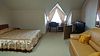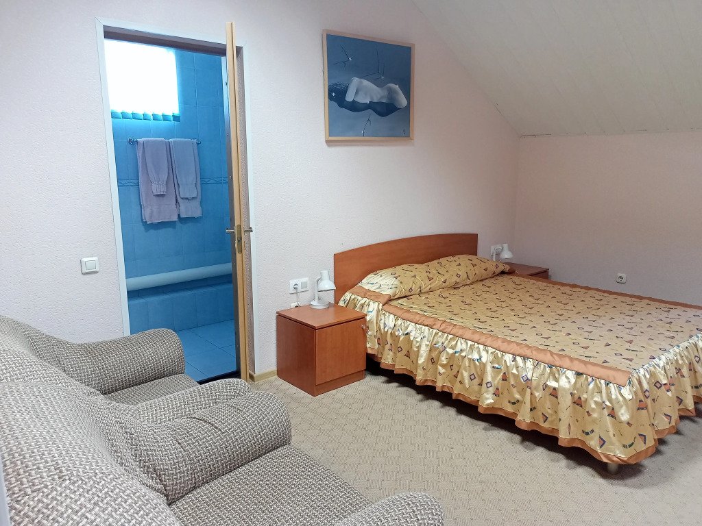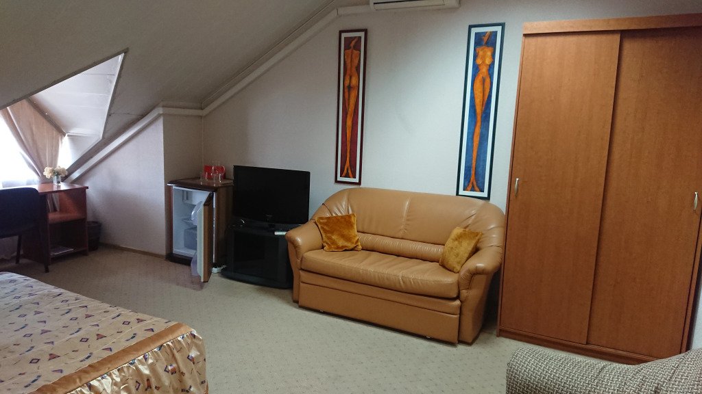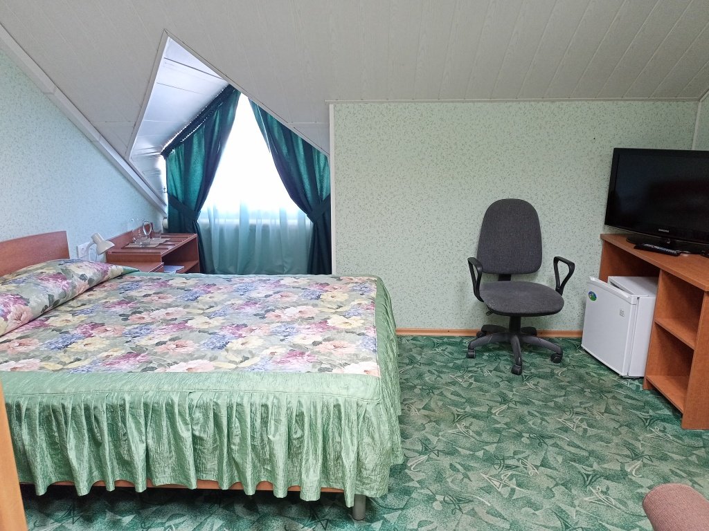 Номер уютно обставлен и оснащён необходимым, чтобы отдохнуть после долгого и насыщенного дня. Имеются телевизор и халат. Оснащение зависит от выбранной категории номера.