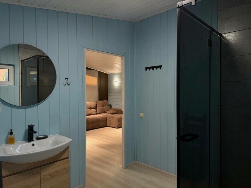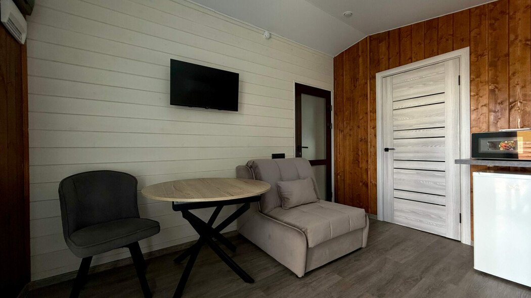 Каждый дом создан для вашего комфорта: светлая спальня наполнена теплой атмосферой, а просторная кухня-гостиная с раскладным диваном становится идеальным местом для душевного общения. Вы найдете всё необходимое для приготовления домашних блюд — от чайника и холодильника до микроволновой печи и плиты. На просторной террасе с уличной мебелью и собственной мангальной зоной вы сможете наслаждаться неспешными вечерами под умиротворяющий шепот реки.