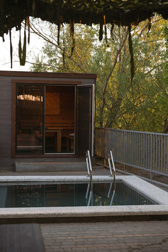 На территории есть свой небольшой бассейн с подогревом, своя баня на дровах — 1000 ₽/час, минимум 3 часа. Можно заказать дубовый веник — 450 ₽.