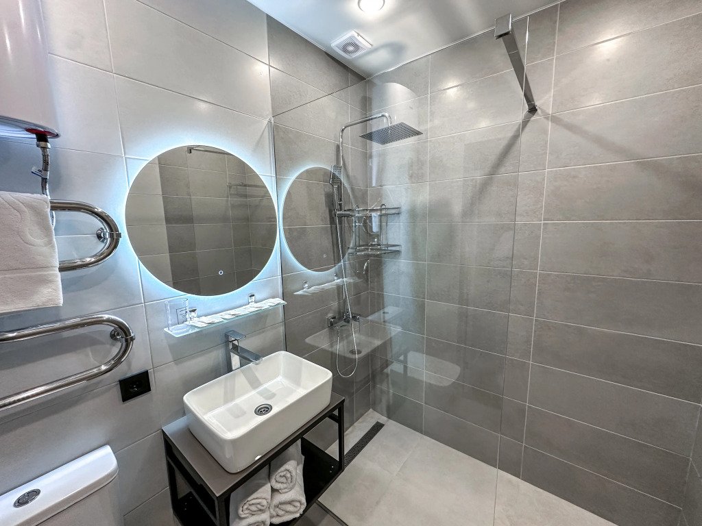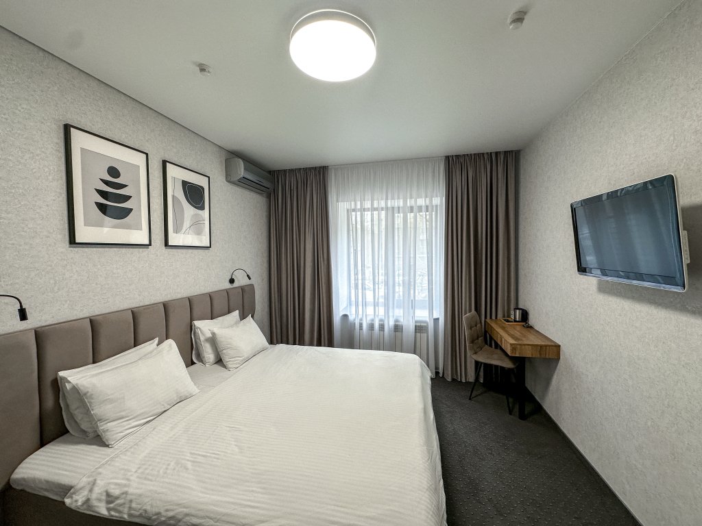 В номере вас будут ждать телевизор и халат. Оснащение зависит от выбранной категории номера.
