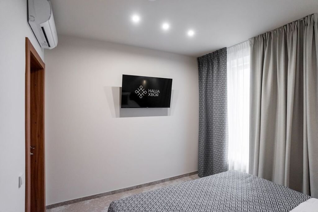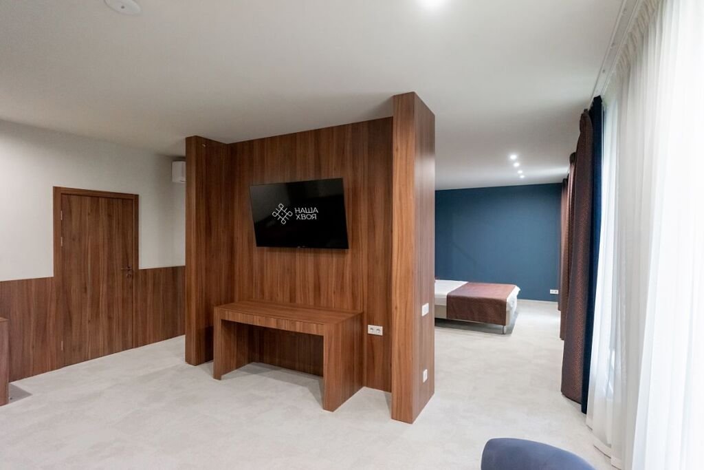 Апартаменты в парк-отеле «Наша Хвоя» — это современные и комфортабельные домики с террасой и панорамными окнами, которые предоставляют гостям возможность насладиться отдыхом в живописном месте.