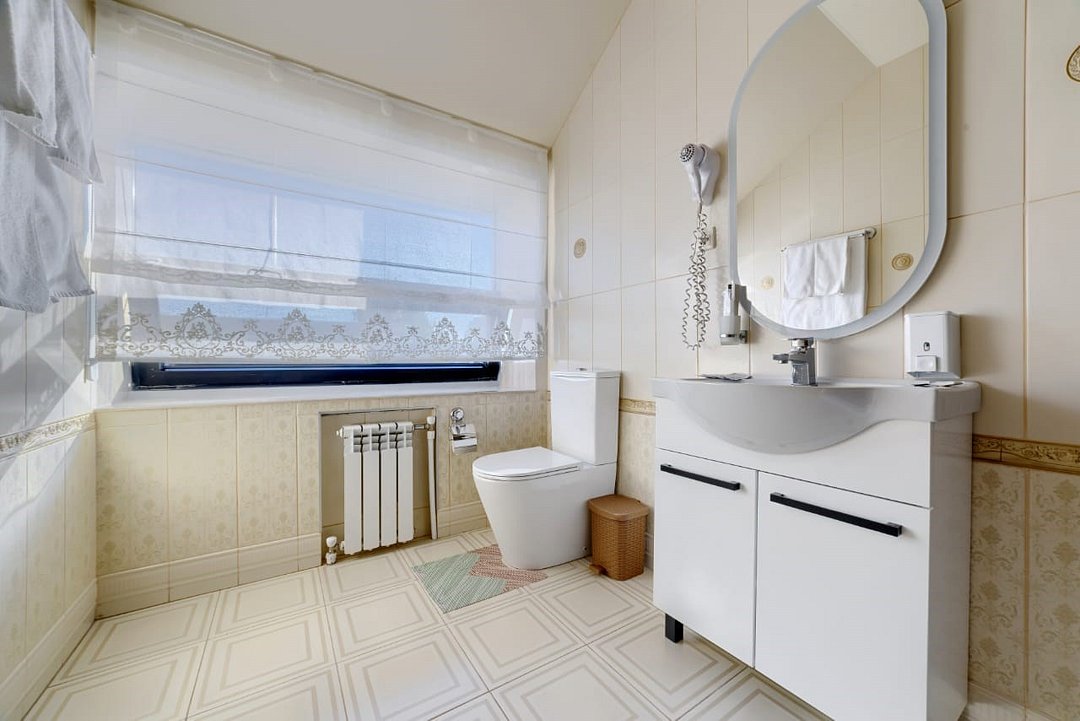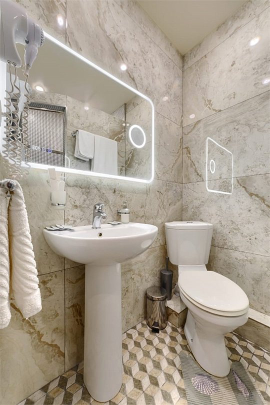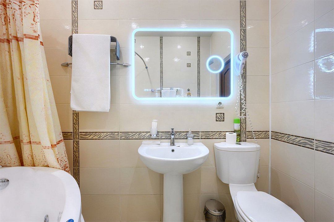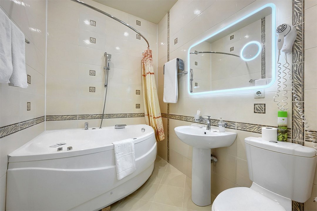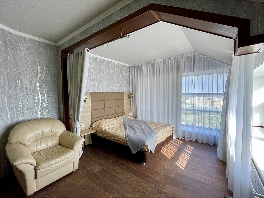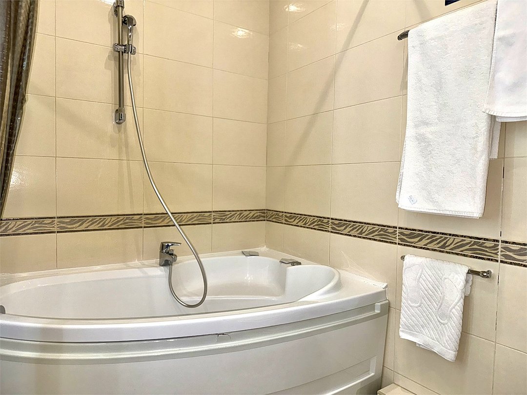 интерактивное телевидение, Wi-Fi, холодильник, кондиционер, светильник, настольные лампы, фен, обогреватель, ванная комната, санузел, банные полотенца, тапочки, двуспальная кровать, ортопедический матрас, диван, тумбы, шкаф для одежды, вешалки, журнальный столик, зеркало, комод, звуконепроницаемые стены и окна, чайник, унитаз, раковина, мягкая мебель, вид на город, кулер на этаже, кресло, ламинат, высокие потолки, стаканы, стол, туалетные средства, туалет, сплит-система, панорамные окна, диван-кровать, внутренний телефон, телевизор с плоским экраном, москитная сетка, уборка номера, можно с питомцамиВ номере