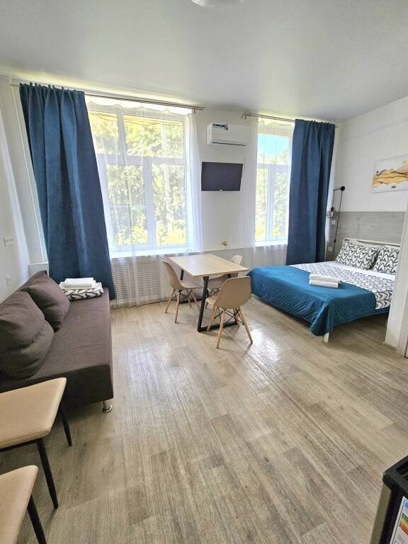 Номер уютно обставлен и оснащён необходимым, чтобы отдохнуть после долгого и насыщенного дня. Имеются телевизор. Перечисленные услуги есть не во всех номерах.
