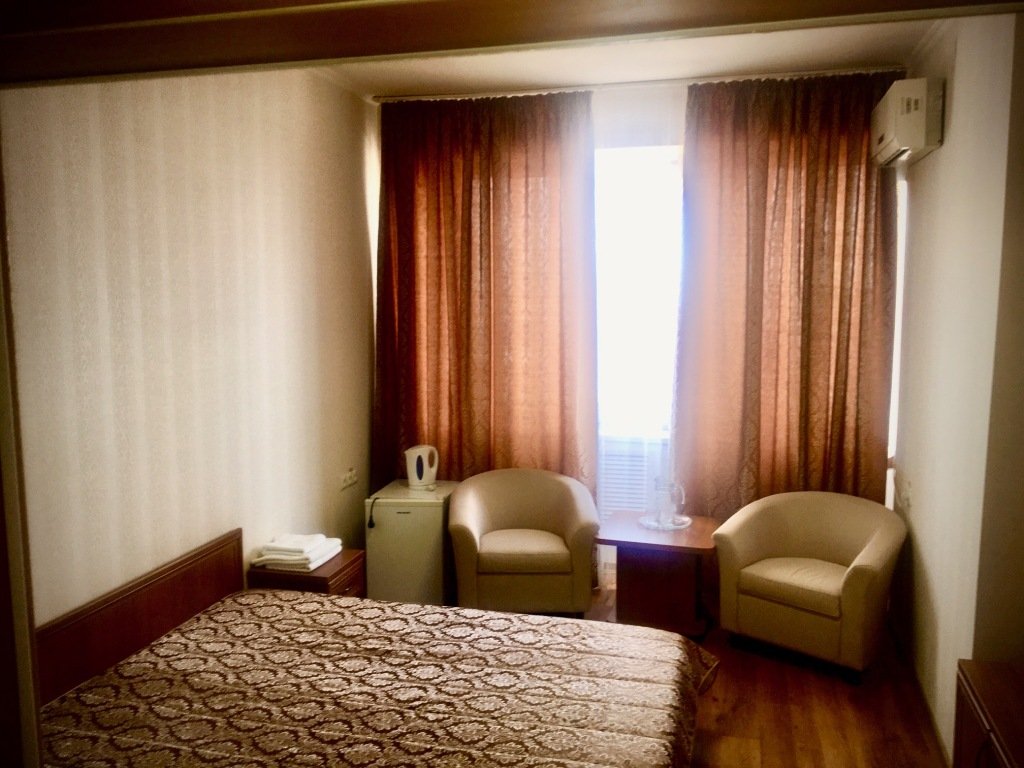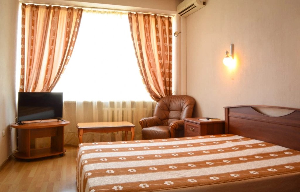 Номер уютно обставлен и оснащён необходимым, чтобы отдохнуть после долгого и насыщенного дня. Имеются телевизор. Перечисленные услуги есть не во всех номерах.