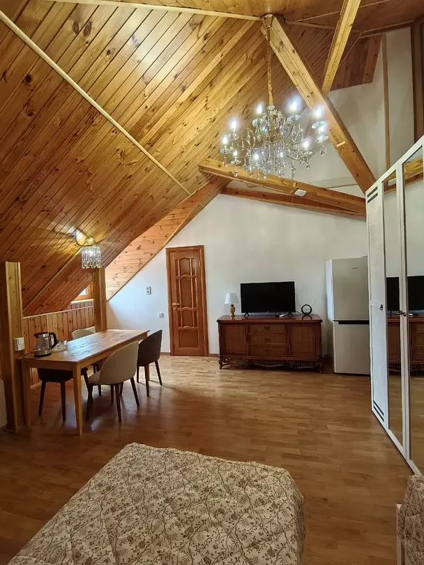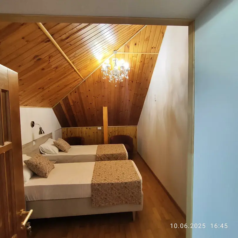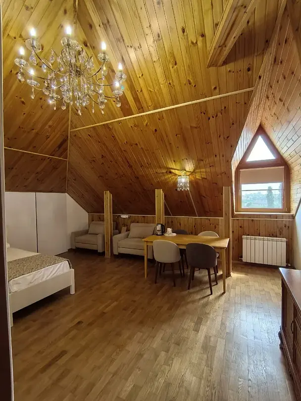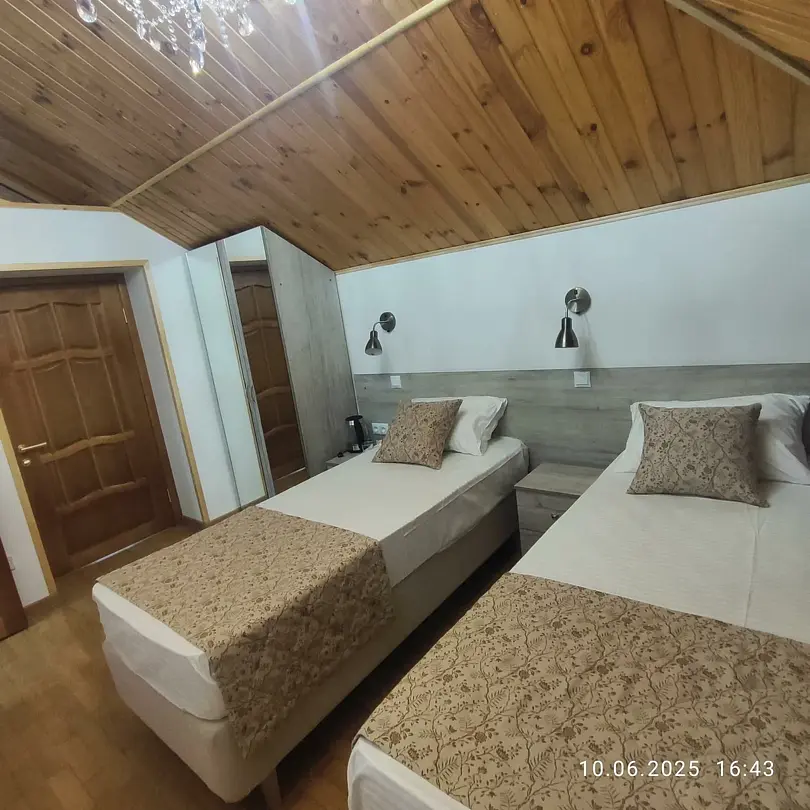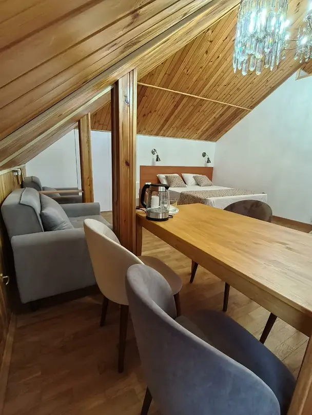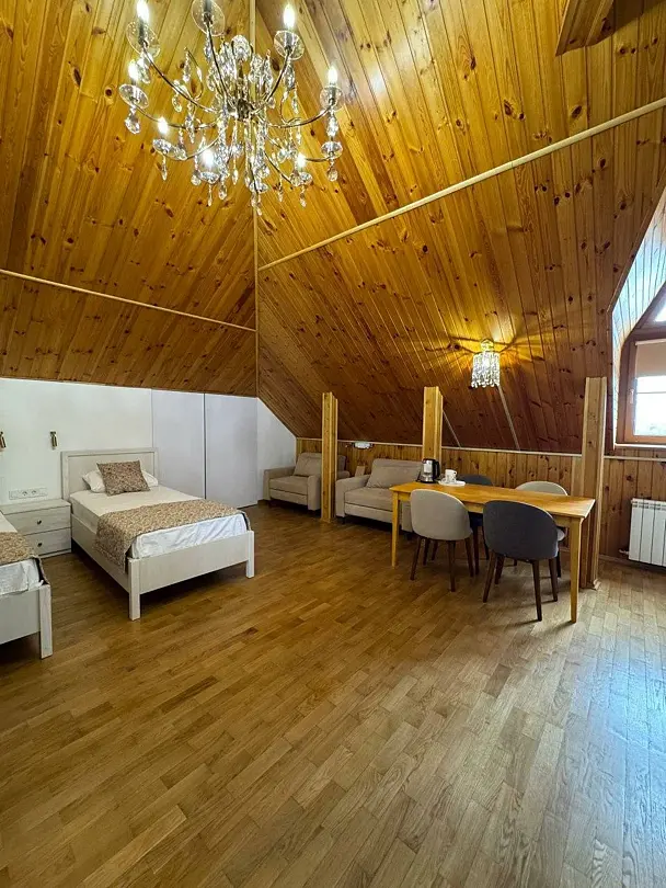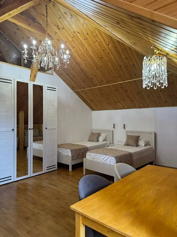 Четырёхместный семейный номер с тремя кроватями мансарда