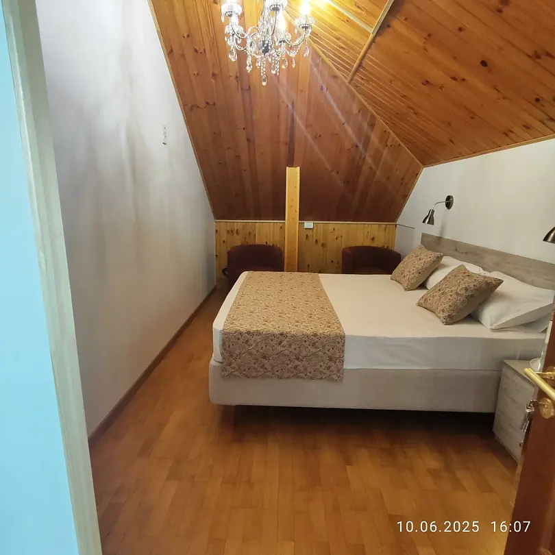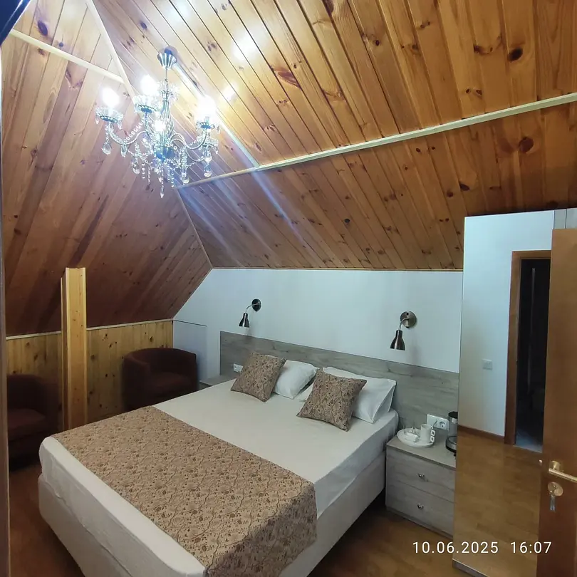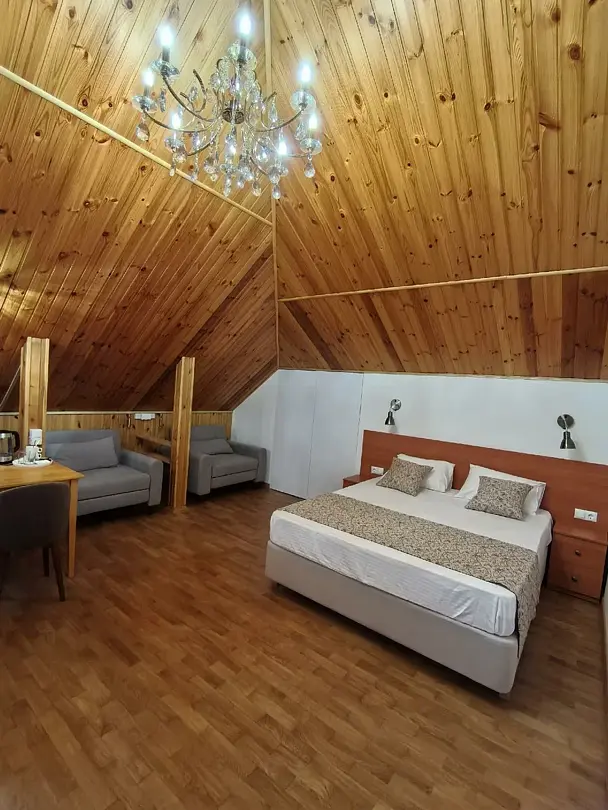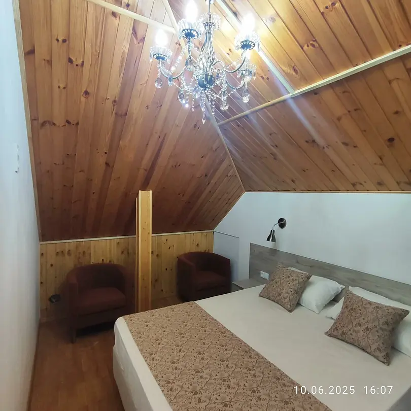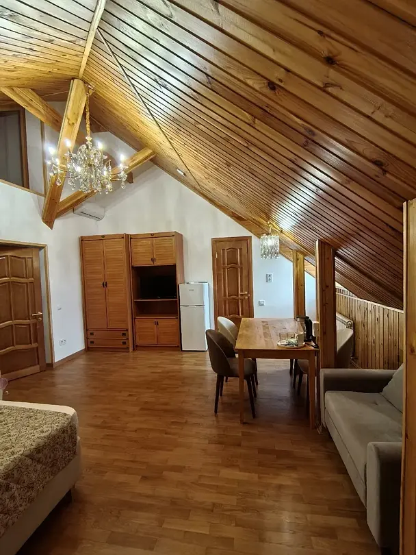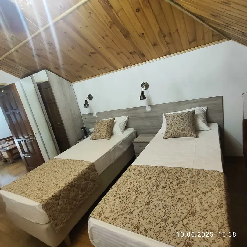 Четырёхместный семейный номер с тремя кроватями мансарда