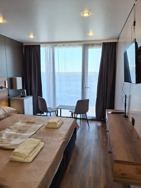 Семейный отдыхДостоинстваОтличные чистые удобные домики. Кондиционер. Балкон выходит на Волгу. До реки метров 10. Очень понравилось. Я спокойно могла на балкончике пить кофе и наблюдать за ребенком на рыбалке не волнуясь...