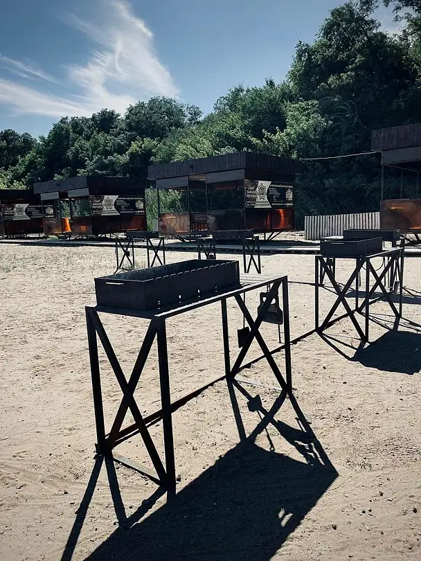Мангальная зона с шампурами входит в стоимость аренды беседки и позволяет приготовить сочный шашлык на свежем воздухе, создавая идеальные условия для отдыха и наслаждения природой.