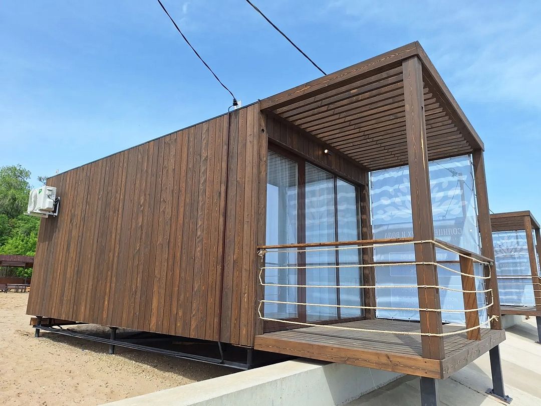 Парк-отель «Солнце, воздух и вода» предлагает уютные модульные домики на берегу Волги.