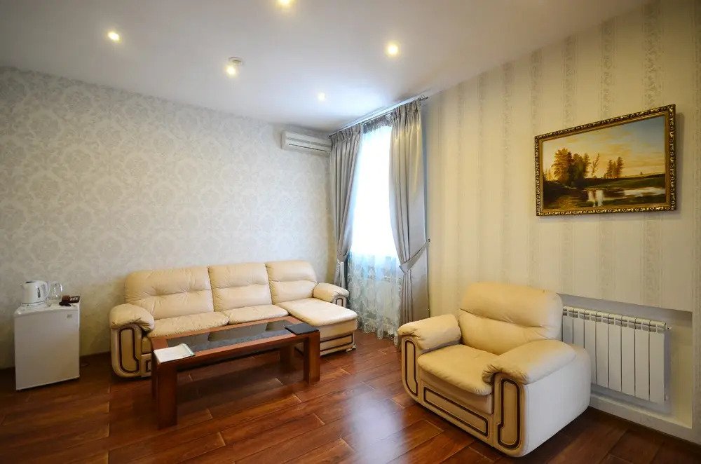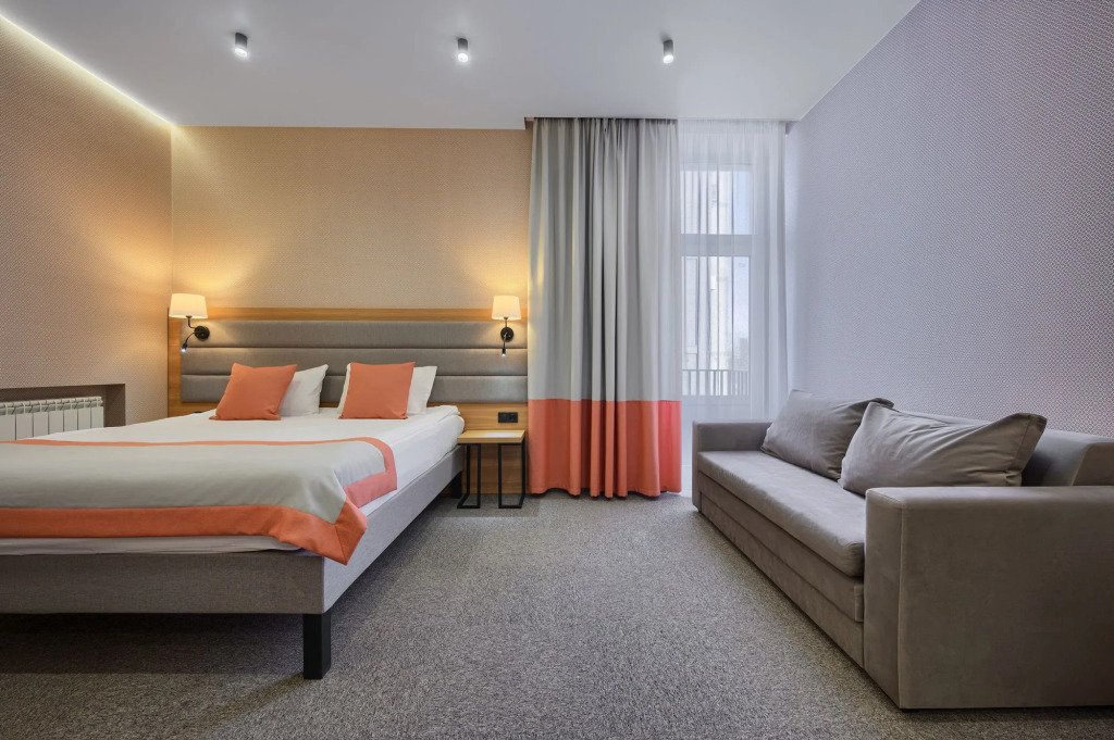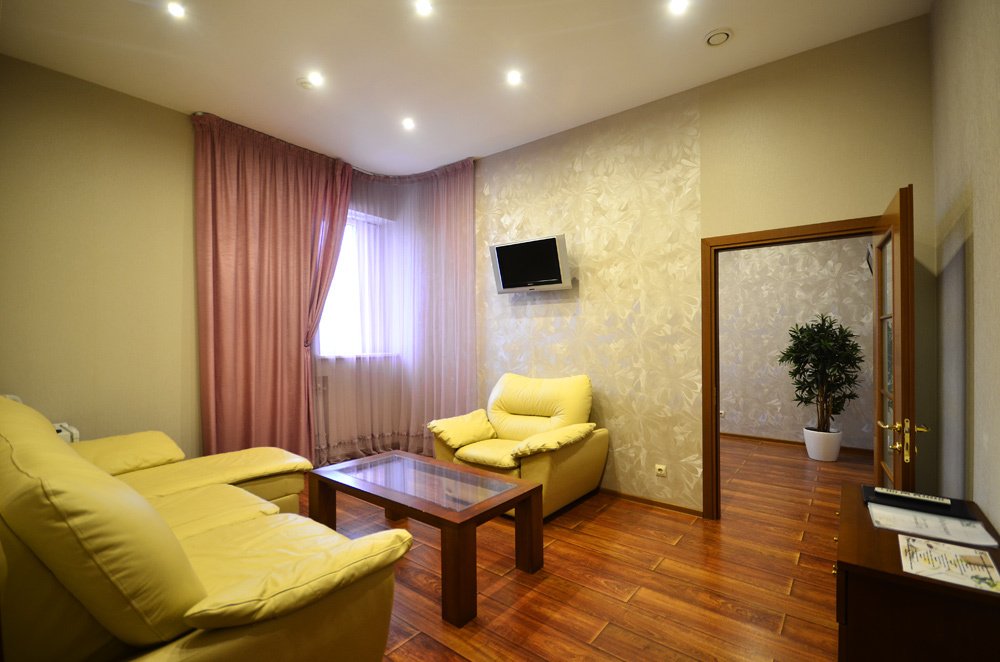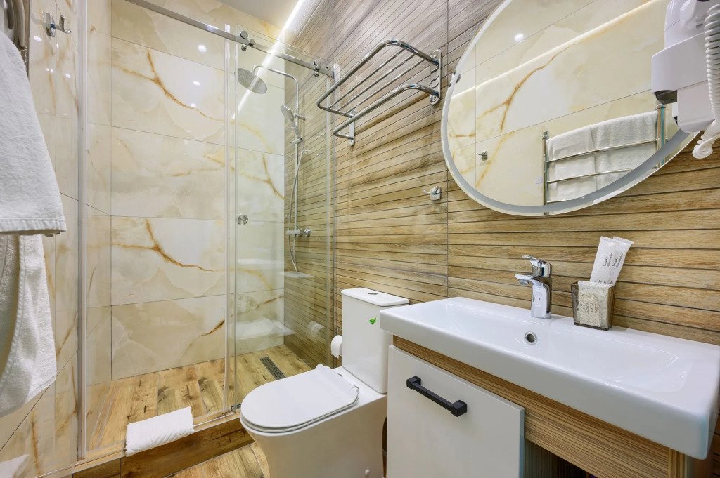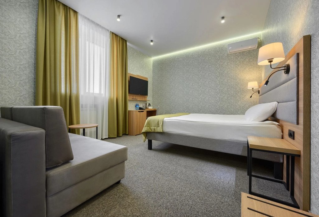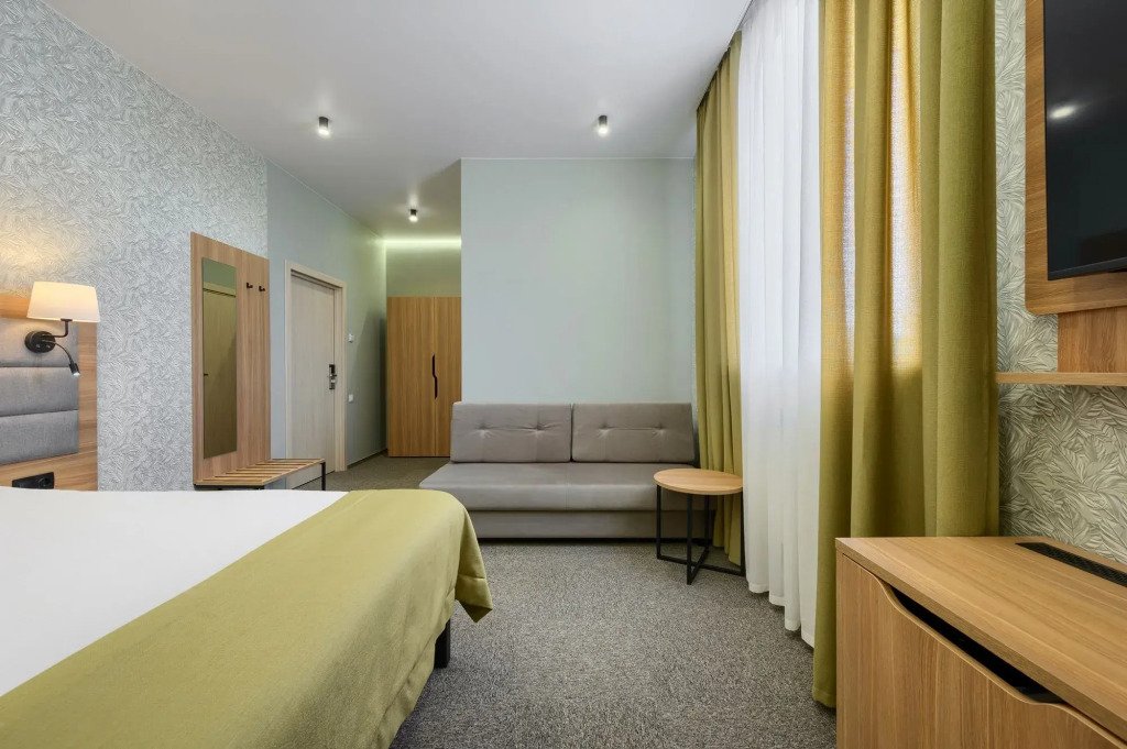 В номере вы найдёте телевизор. Оснащение зависит от выбранной категории номера.