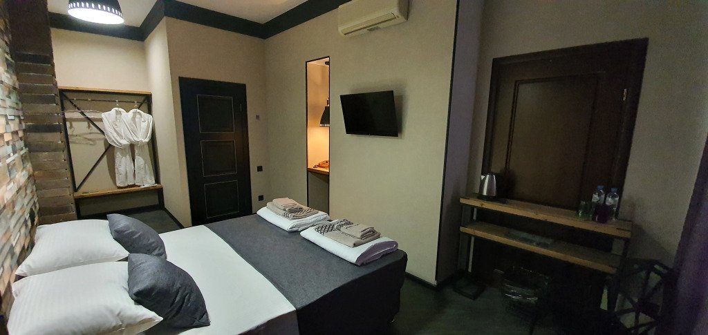 В номере гостей ждут душ, телевизор, халат и тапочки. Перечисленные услуги есть не во всех номерах.