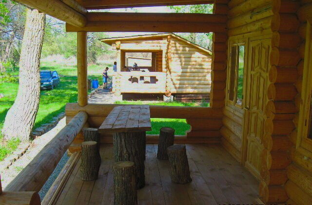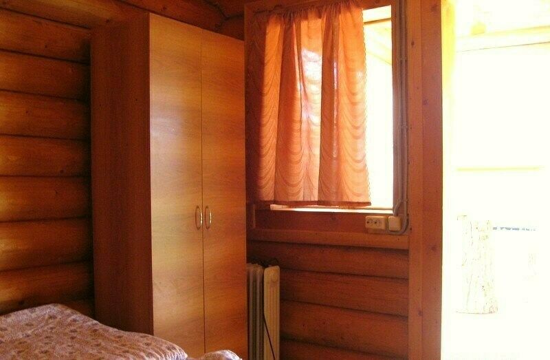 4. Комнаты из сруба, за ним не ухаживают, ничем не обрабатывают, поэтому он весь иссохся и воздух ужасно сухой, что с закрытой дверью невозможно было спать.