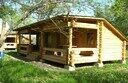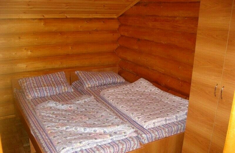 Всего 24 номера. Проживание в 2-х местном номере без кондиционера с выходом на большую веранду. В номере: двуспальная или две односпальные кровати, шкафы для одежды, электрический чайник. На веранде стоят большой стол со стульями, холодильник. Перед каждым срубом имеется мангал. Удобства в отдельном благоустроенном помещении с душевыми и санузлами.