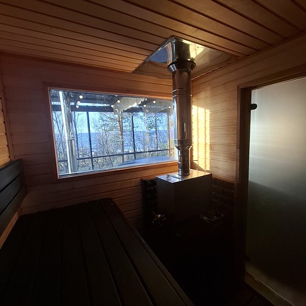 Читать полностьюПаровая баня с панорамным видом на озеро и бухту. 70% влажности.