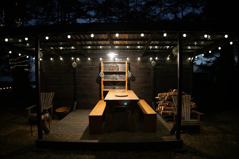 Беседка защищает от ветра и дождя. Здесь есть мангалы и вы сможете приготовить BBQ в любую погоду.