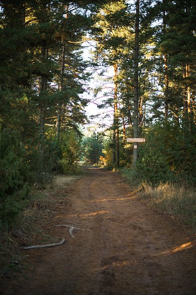 Лесная дорога лежит на косе в окружении дюн из камней и песка, поросших сосновым лесом. Берег Ладоги здесь состоит из гигантских булыжников. Осенью уровень воды низкий и по камням можно пройти очень далеко!