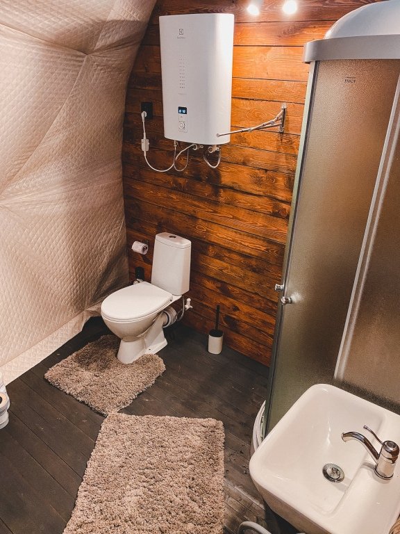 Каждый геокупол оборудован собственным открытым санузлом с душевой кабиной, раковиной и туалетом.