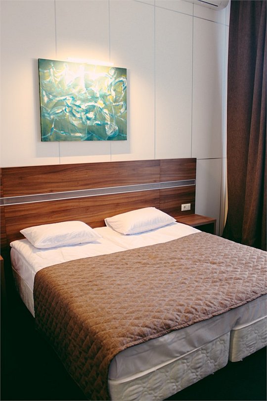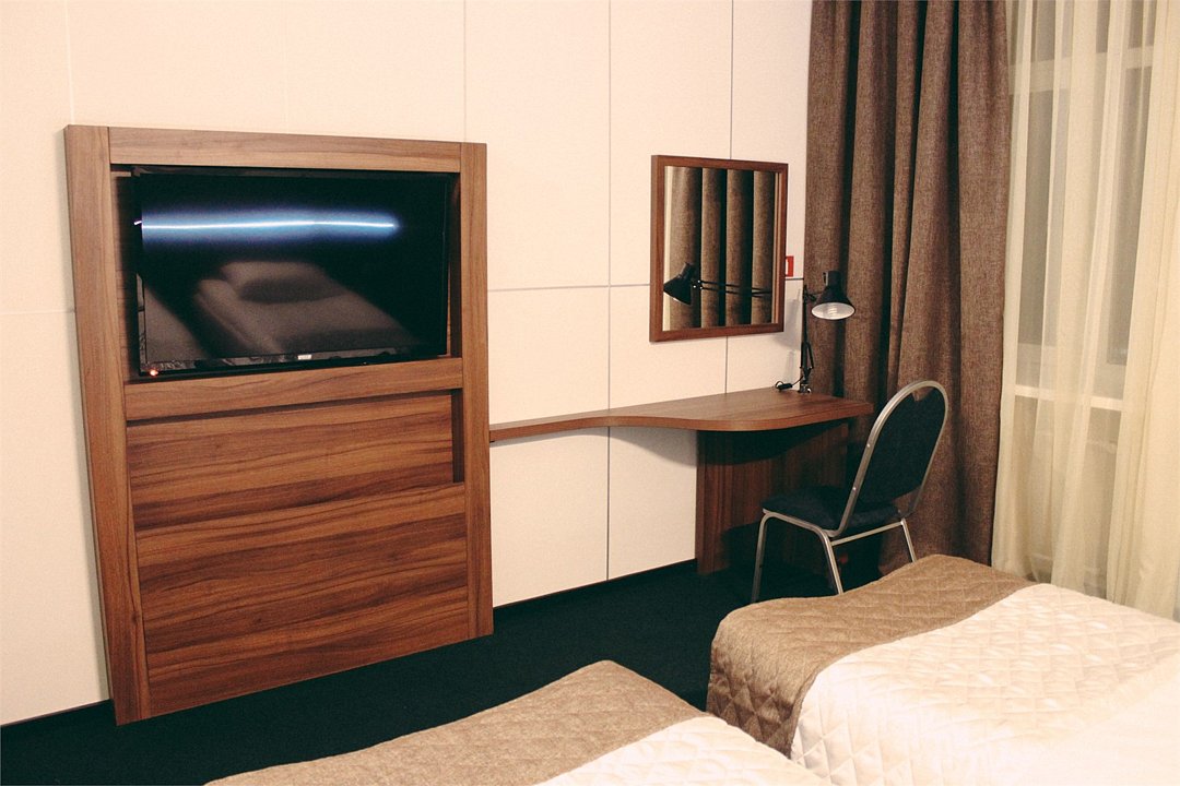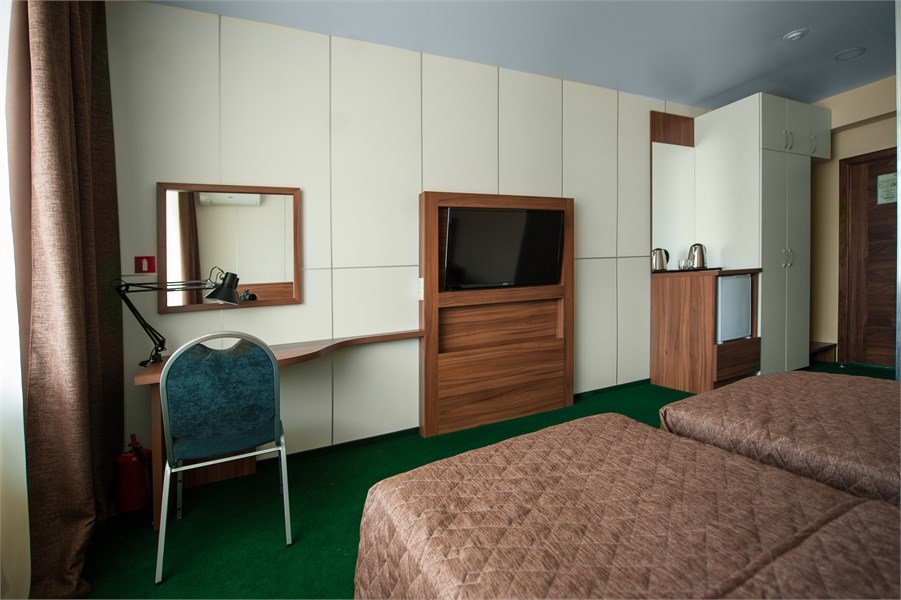 Комфортный номер на двоих человек. В номере: мебель (две раздельные односпальные кровати 90 см на 200 см, две тумбочки, стул, письменный стол, шкаф, холодильник, электрочайник); современная отделка; LCD-телевизор диагональю 42 дюйма с кабельным ТВ; кондиционер; отдельный санузел с ванной; фен, средства личной гигиены, 5 полотенец.Услуги и удобства
