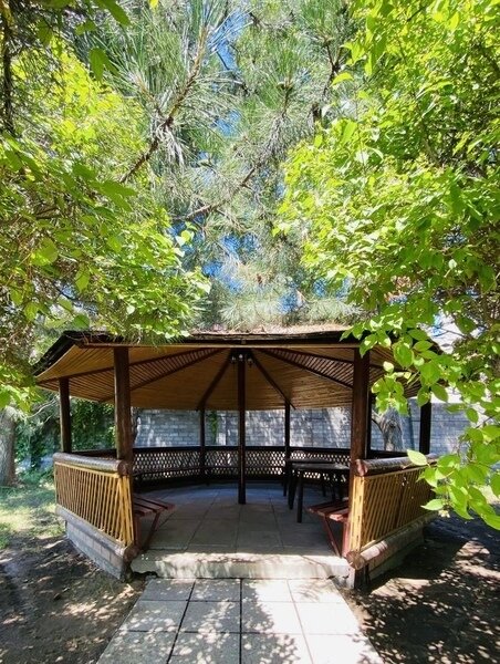 Аренда беседки (до 10 человек) — 2000 ₽ + мангал - 500 ₽ (с 8:00 до 23:00). Аренда летней площадки и мангала (с 8:00 до 23:00, до 20 человек) — 5000 ₽.