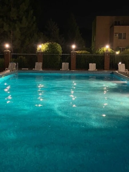 Тип бассейна: открытый бассейнРядом с бассейном: шезлонгиСвободное посещение бассейна: 300 ₽/час (взрослые), 230 ₽/час (дети от 7 лет) с 08:00 до 17:00; 350 ₽/час (взрослые), 250 ₽/час (дети от 7 лет) с 17:00 до 20:00. Дети до 14 лет могут посещать бассейн только в сопровождении взрослых.